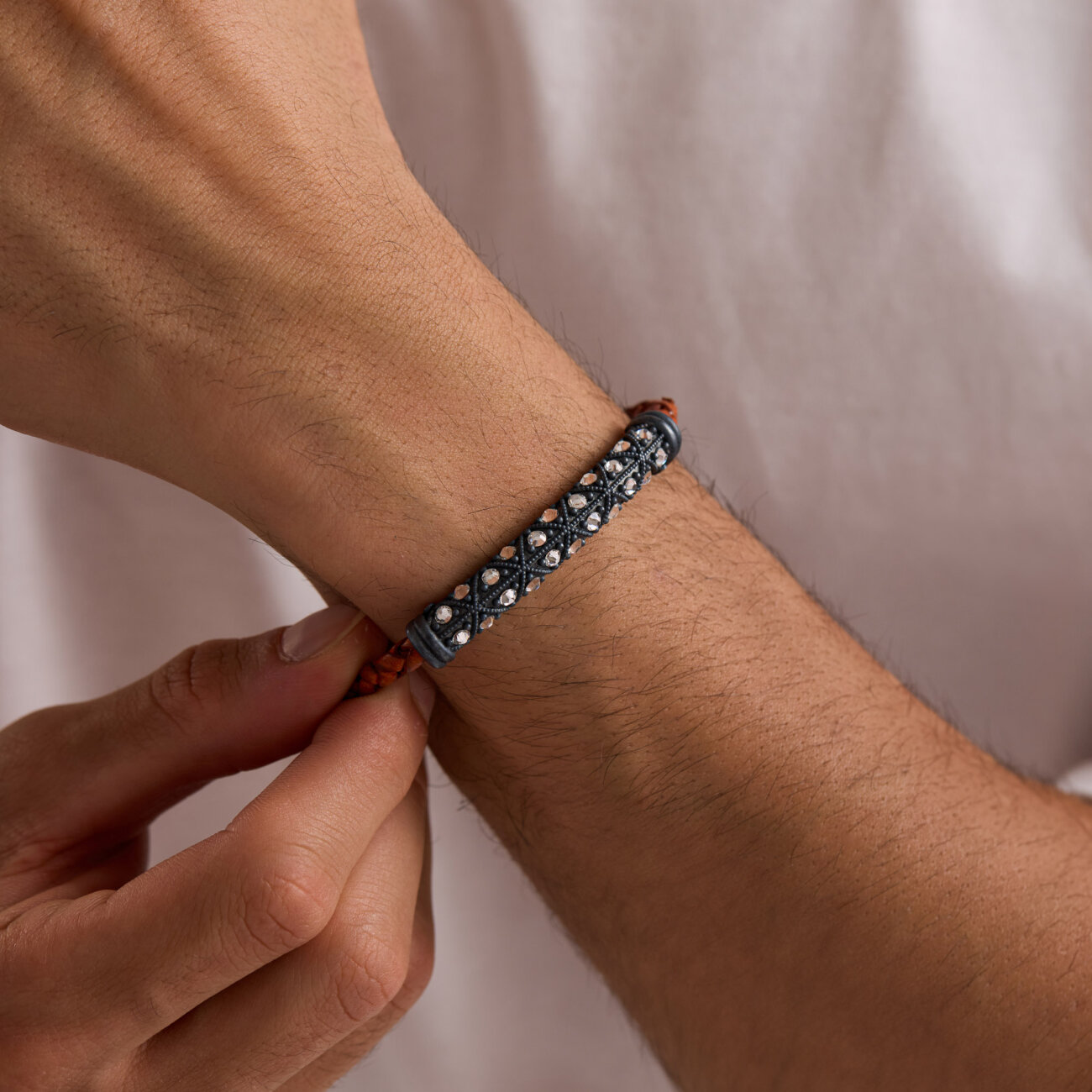 Çelik kol üzerine Onyx ve Champagne taşlı, 925 ayar üzerine mikron altın kaplama bileklik olup kendinden ayarlı şekilde tasarlanmıştır.